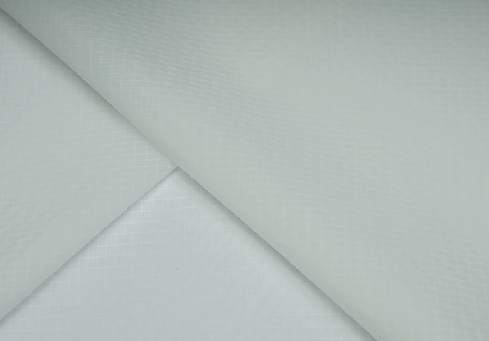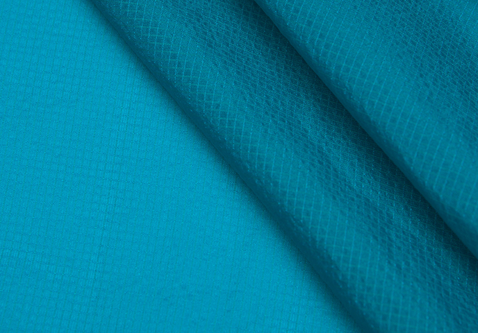 面料質(zhì)地輕薄而通透,具有優(yōu)雅而神秘的藝術(shù)效果,在紗線本身具備的功能上兼具抗UV、防潑水、吸濕排汗等功能。